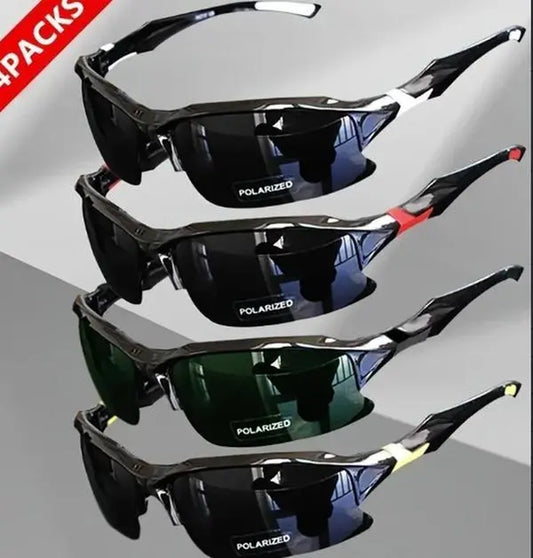 4 Packs Outdoor UV Protection Sunglasses Polarized Windproof Rimless Square Cat Eye Oversized for Running Fishing Golf Driving Travel