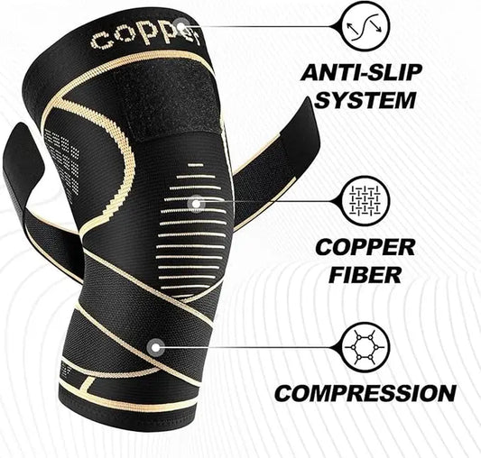 Copper Knee Braces for Men and Women 2 Pack for Knee Pain Relief & Support - 3D Knitting Technology for Meniscus Tear, Running, Weightlifting, Workout, ACL, Arthritis, Joint Pain Relief - Patella Band Compression